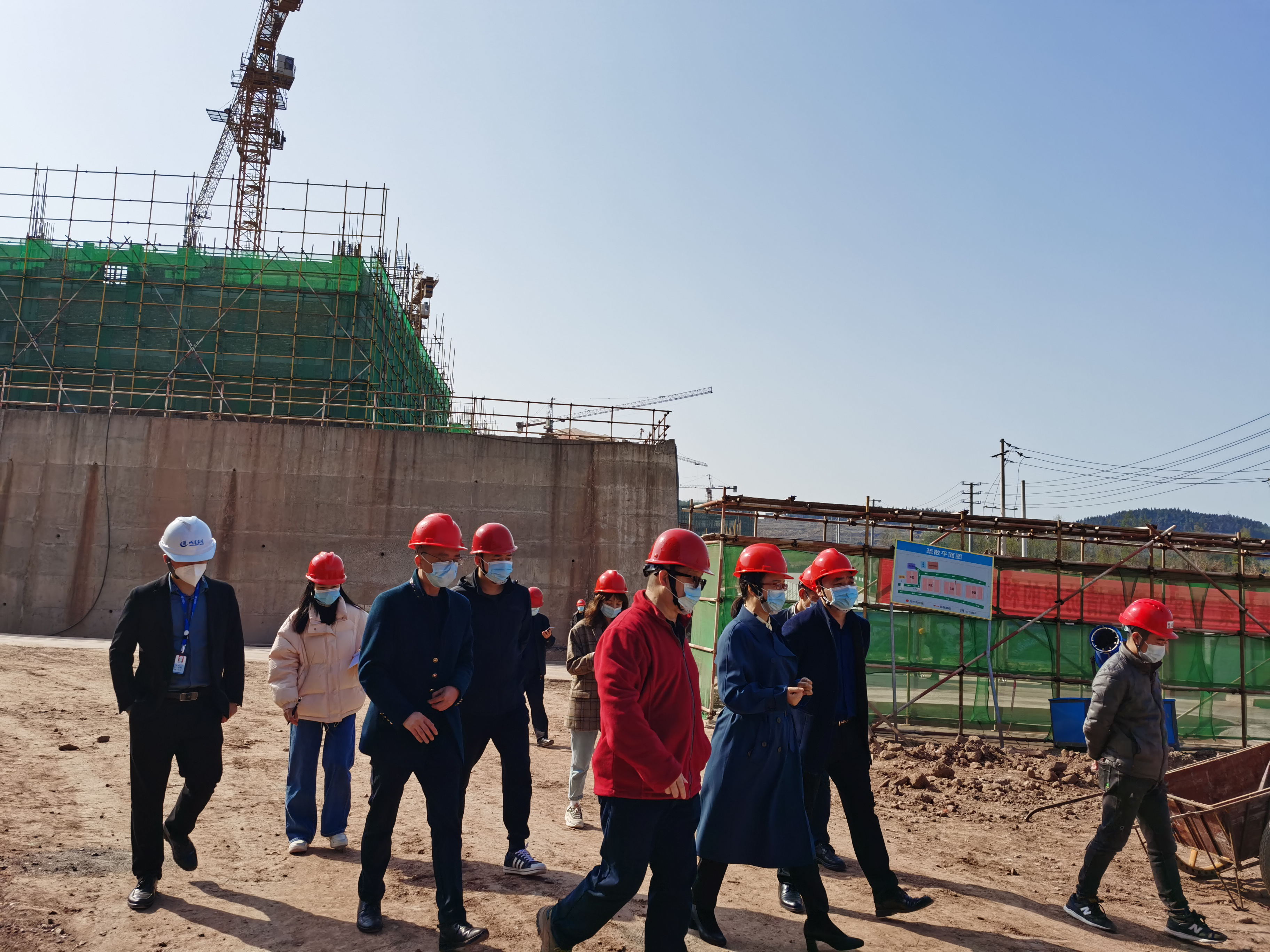 在項目施工現(xiàn)場,黃建華認真聽取了項目建設(shè)情況匯報,實地察看了施工進度、工程建設(shè)質(zhì)量、施工安全管理和疫情防控等情況。充分肯定了項目建設(shè)取得進展和疫情防控工作成效,并指出,項目施工現(xiàn)場人員密集、流動頻繁、疫情管控難度大。